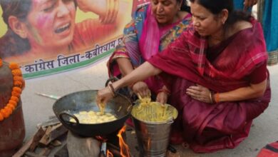गैस सिलेंडर की बढ़ती कीमतों के विरोध में महिला कांग्रेस का अनोखा प्रदर्शन, चूल्हा जलाकर तले पकोड़े