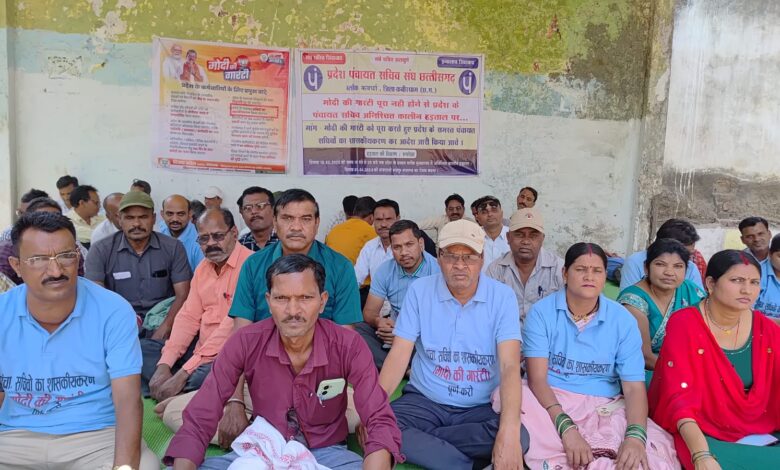 कबीरधाम :- अपनी 1 सूत्रीय मांग शासकीय करण को लेकर प्रदेश पंचायत सचिव संगठन के आवहन पर पूरे प्रदेश में पंचायत सचिवो की हड़ताल अनवरत जारी है इसी क्रम में जनपद पंचायत कवर्धा के 105 ग्राम पंचायत के कार्यरत समस्त सचिव स्थानीय कवर्धा के राजमहल चौक के पास दुर्गा मंदिर के पीछे सभा स्थल पर हड़ताल हेतू एकत्रित है।सचिव संघ ब्लॉक अध्यक्ष डमरू नाथ योगी के द्वारा समस्त हडताली सचिवो के माध्यम से वर्तमान सरकार से आवेदन व निवेदन किया है पूर्व में जब इसी प्रकार अपनी एक सूत्रीय मांग हेतु आंदोलन रत थे तो वर्तमान सरकार में मंत्री व नेतागण अपनी उपस्थिति देकर समर्थन दिए थे कि हमारी सरकार आने में बाद आप सभी की मांगों को माना जायेगा व अपने चुनावी घोषणा पत्र में विशेषता उल्लेख किया गया,परंतु दुर्भाग्य कहा जाए कि वर्तमान सरकार के गंठन के लगभग 18 माह बीत जाने कब बाद भी किसी भी प्रकार हमारी मांगो को को लेकर कोई कार्यवाही नही किया जिससे छुब्ध होकर ही वर्तमान सरकार को पूर्व में किये गए वादों को याद दिलाने हेतु गत 17 मार्च से आज तक अनवरत हड़ताल जारी है व अध्यक्ष डमरू ने पुनः वर्तमान सरकार से निवेदन व कर बद्ध आग्रह किया है कि समस्त पंचायत सचिवों के मांगो को निःशर्त पूरी किये जायें जिससे समस्त सचिव व उनका परिवार आपके सरकार का आभारी रहेगा।